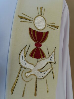 stuła Eucharystyczna biała z Duchem Świętym